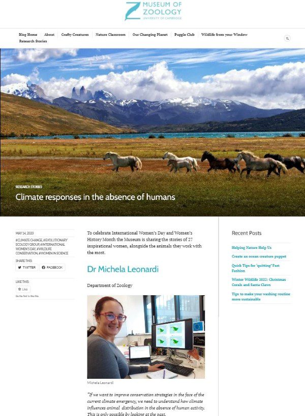 Sul blog del Museo di Zoologia di Cambridge è appena uscito un post in cui si parla di me e del mio lavoro. Fa parte delle iniziative organizzate per la Giornata Internazionale delle Donne (a cui ho già partecipato con una conferenza e un progetto nel Museo).