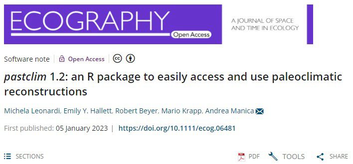 pastclim, il nostro pacchetto R per facilitare l’uso e la manipolazione di dati paleoclimatici è stato aggiornato alla versione 1.2. Inoltre, è uscito su Ecography l’articolo che lo descrive: