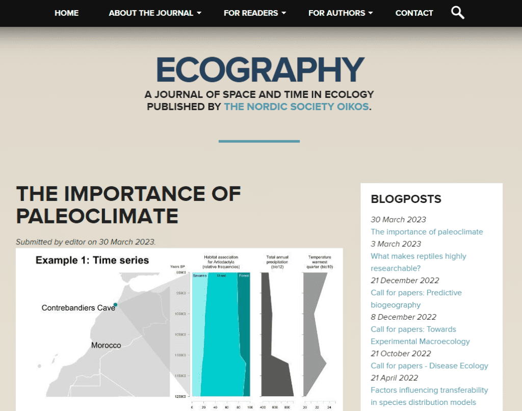 È uscito sul blog della rivista Ecography, un post che ho scritto a proposito di pastclim, il nostro “motore di ricerca” del clima del passato. Si può leggere a questo link.